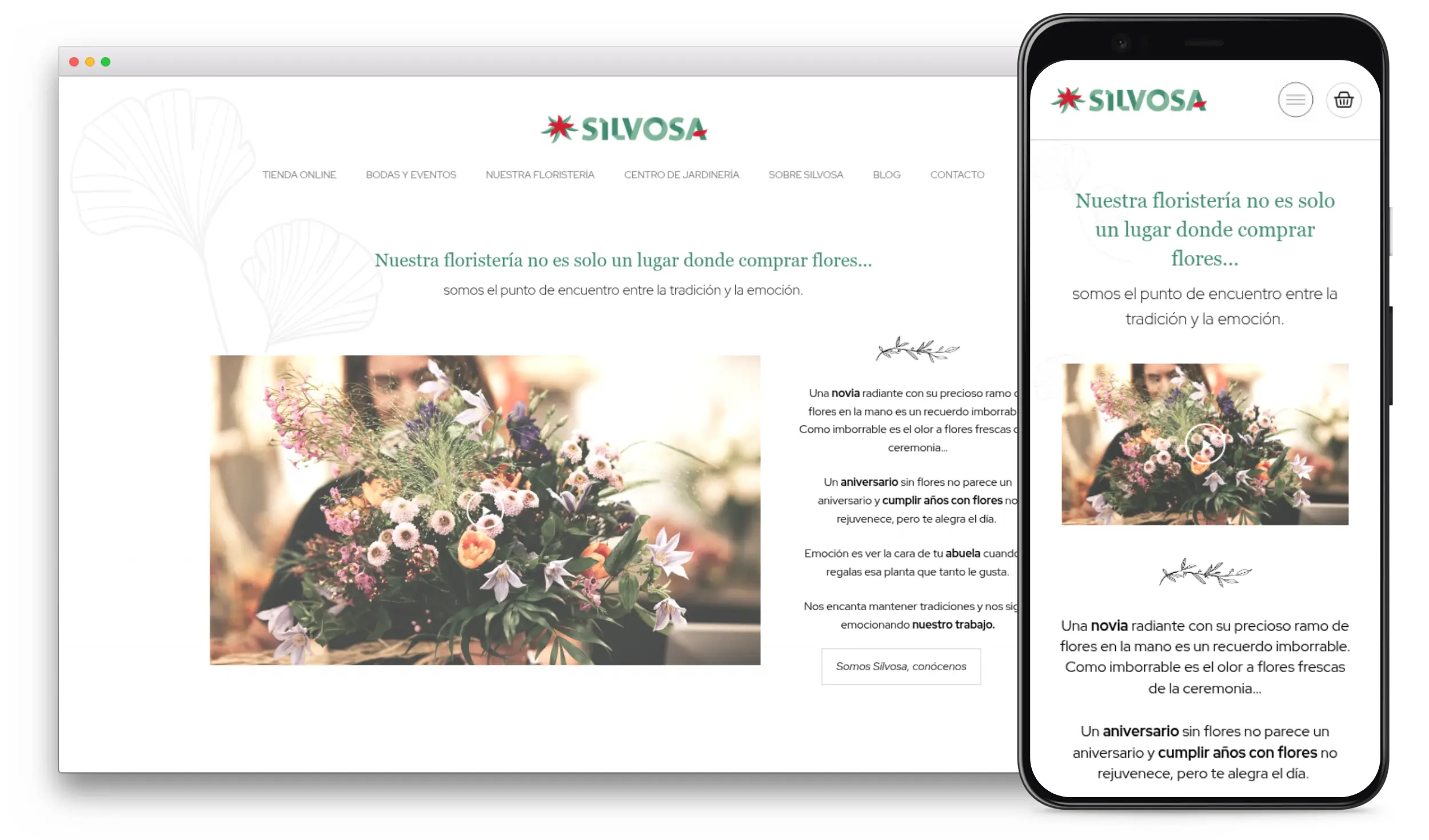 Para ello el primer paso fue desarrollar una web corporativa que mostrara de un vistazo el auténtico alcance de Silvosa, que desde luego va mucho más allá de una floristería de barrio