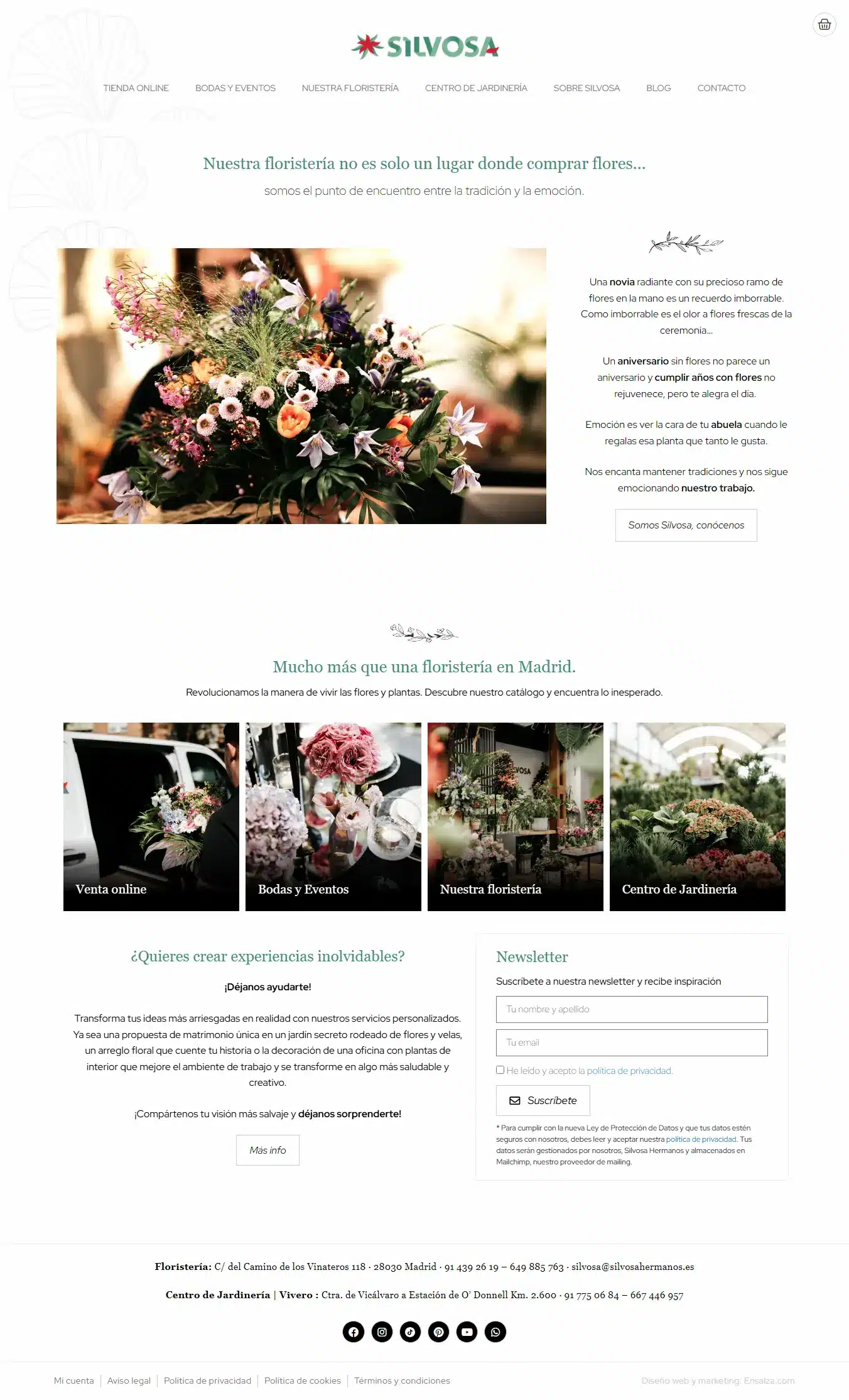 Para ello el primer paso fue desarrollar una web corporativa que mostrara de un vistazo el auténtico alcance de Silvosa, que desde luego va mucho más allá de una floristería de barrio